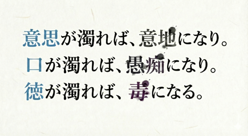 “意思が濁れば、意地になり。口が濁れば、愚痴になり。徳が濁れば、毒になる。”